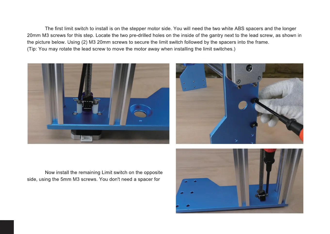 Step 2: Install four cable holders on the same side of the gantry. Two on the inside and two on the outside.