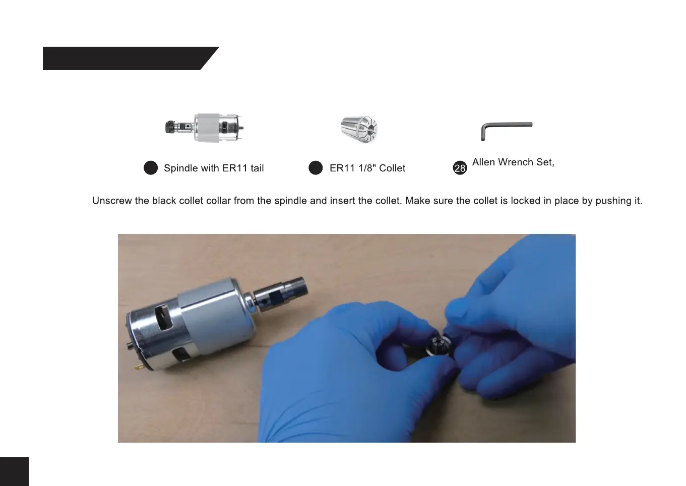 Then screw the the collet collar back to the spindle.