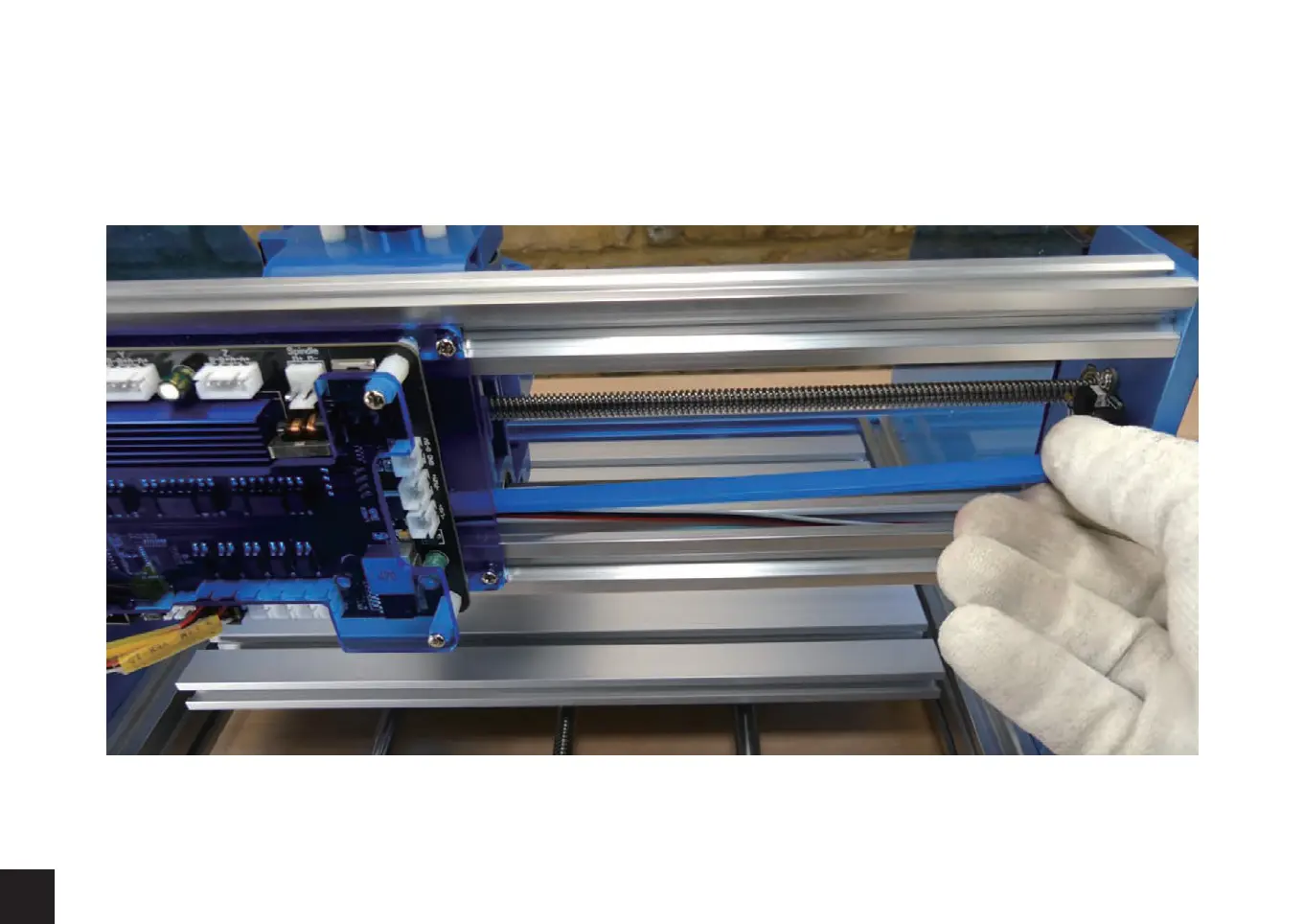 ステップ3:シーリングストリップ(平らな面を外側に向け)でリミットスイッチケーブルX-LIM(-)をX-軸/Z-軸ガントリー