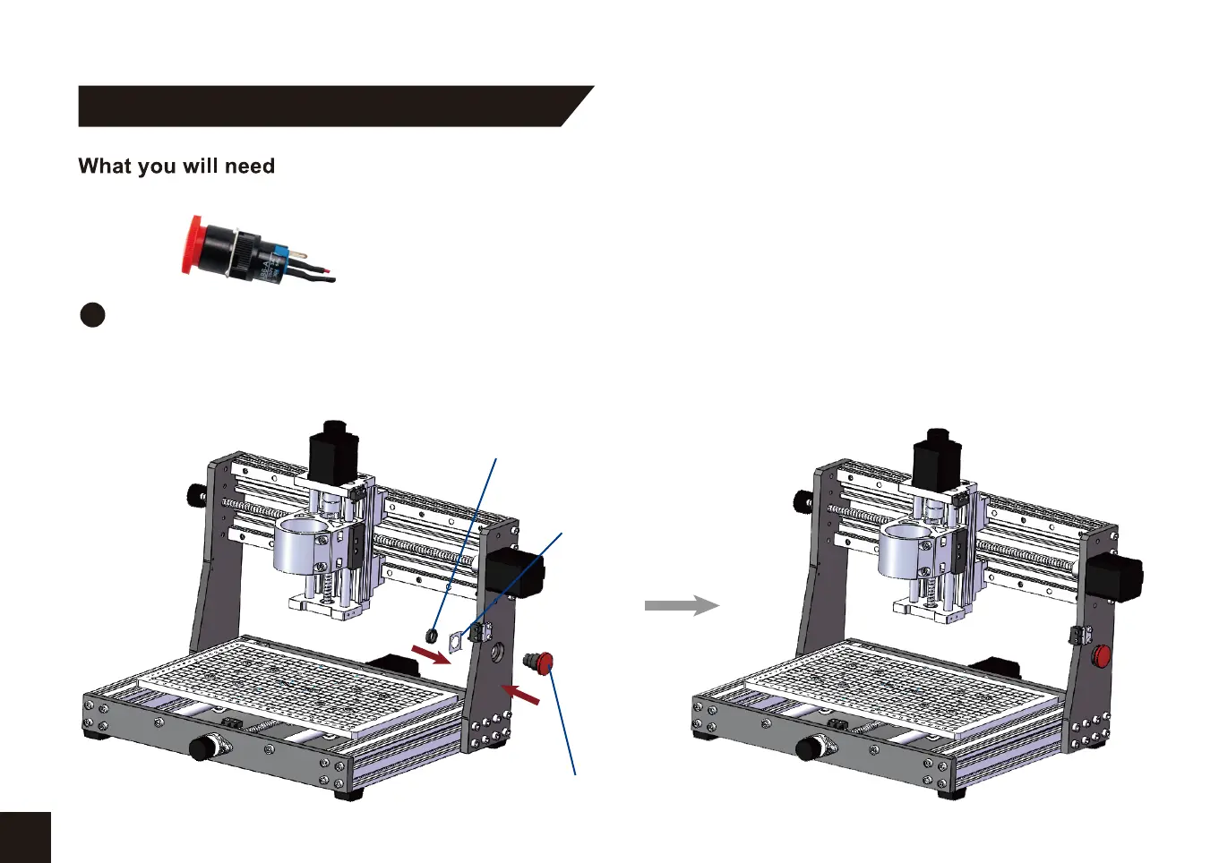 Put the emergency stop switch through the round hole of the vertical plate, install the emergency stop switch spacer on the other side