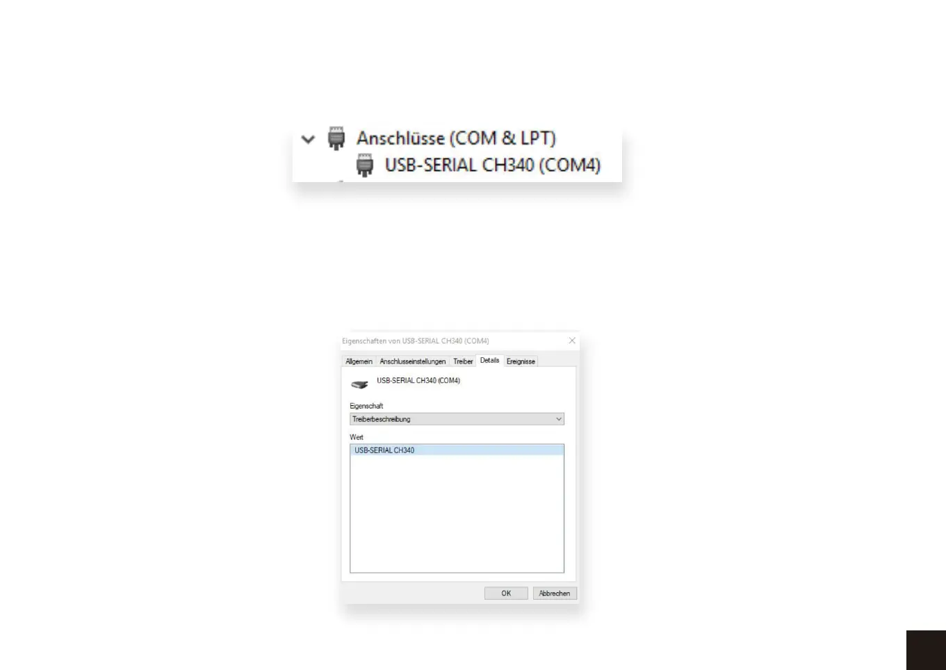 Das Gerät hat die Treiberbeschreibung „USB-SERIAL CH340".