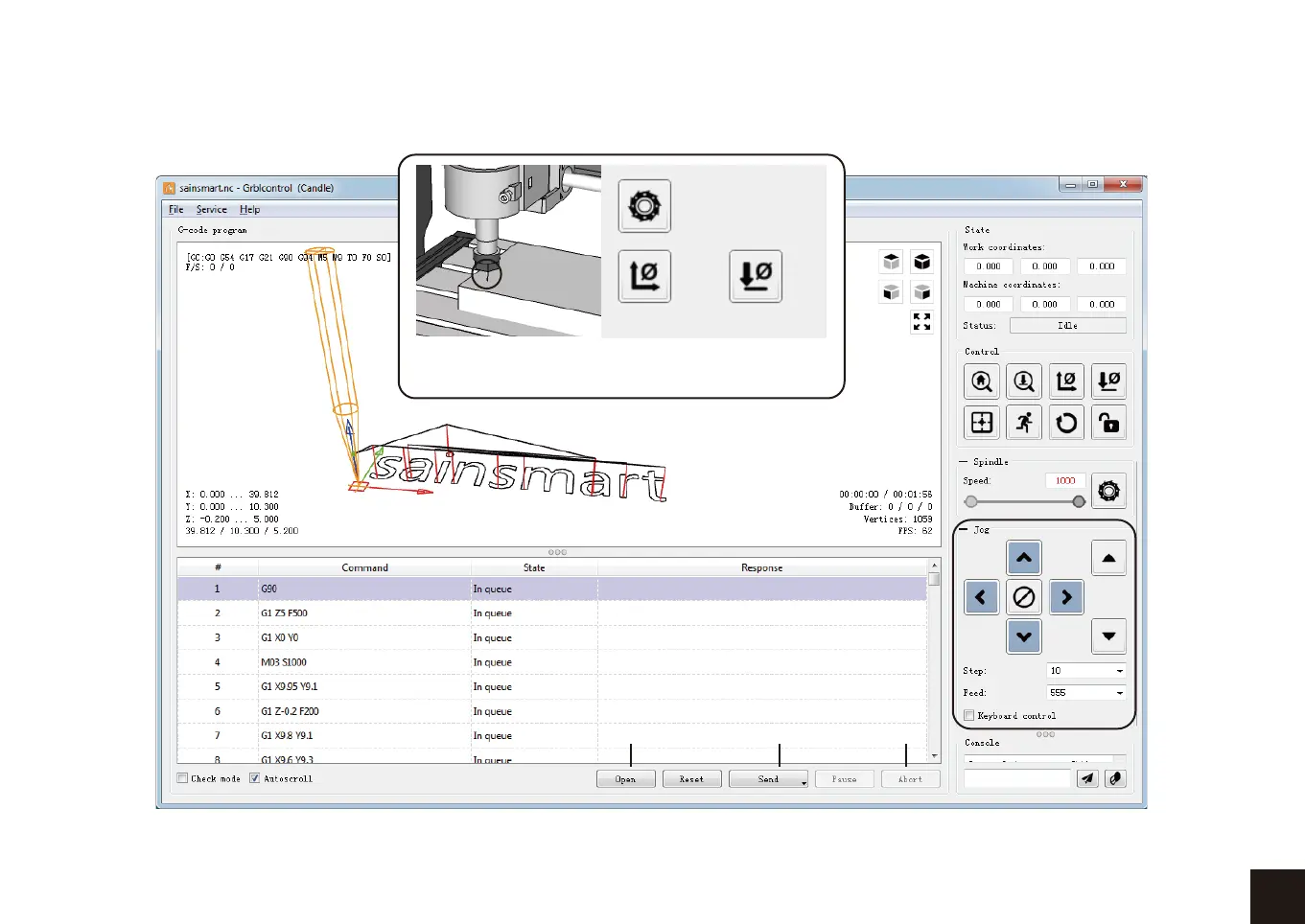 G-code Datei öffnen Bearbeitung starten abbrechen