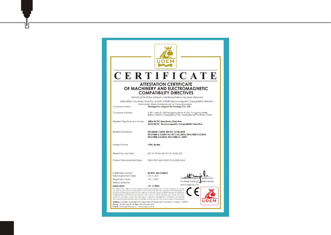 Genmitsu 3020-PRO MAX CNC - CE and Safety Certificates of Compliance
