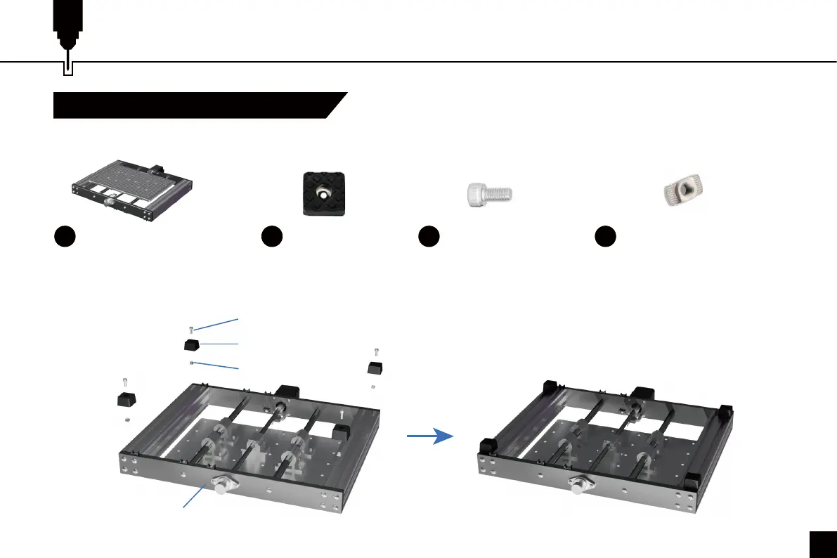 in den Profil-Schlitz und montieren Sie (4) Gummifüße an jeder Ecke mit den M4×10-Innensechskantschrauben.