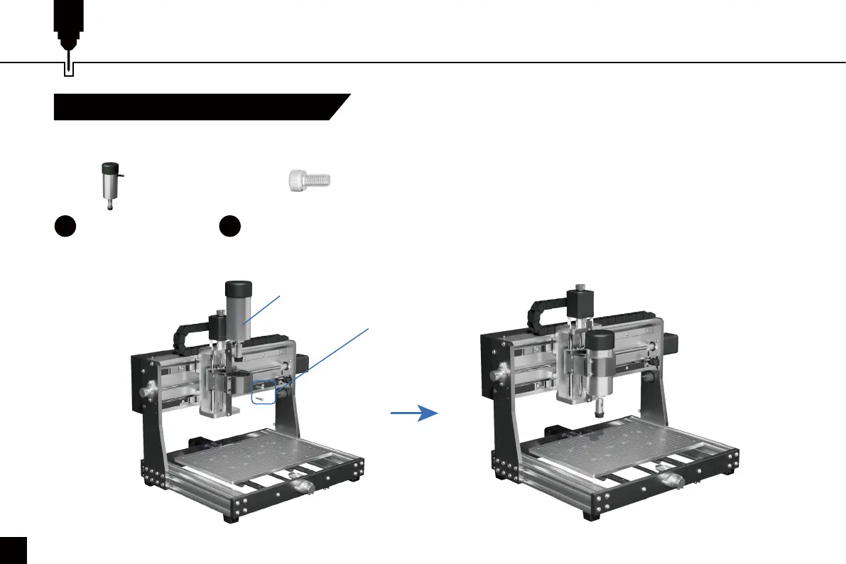 Insert the spindle motor into the mount holder and secure it with (2) M4×16 screws.
