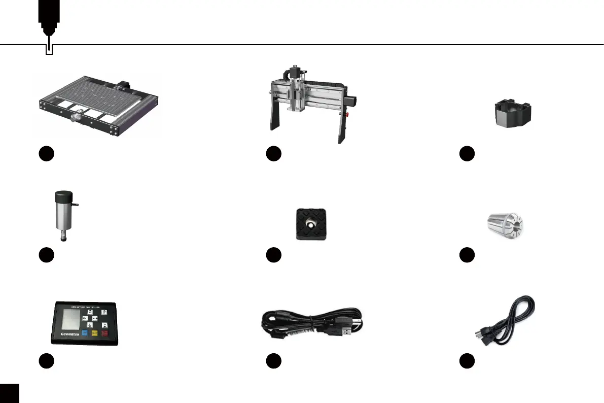 04 Spindle 05 (4) Rubber Feet 06 ER11 1/8” Collet