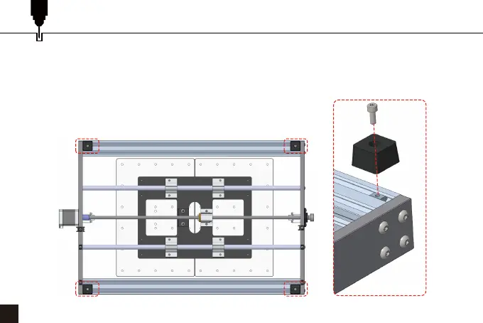 2. Richten Sie die Schraubenlöcher des Gummifußes auf die Gewindelöcher der T-Nutensteine aus.