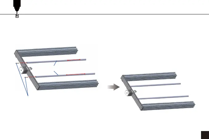 Insert the screws through the round holes of the rear bar, and align them with the screw holes of the