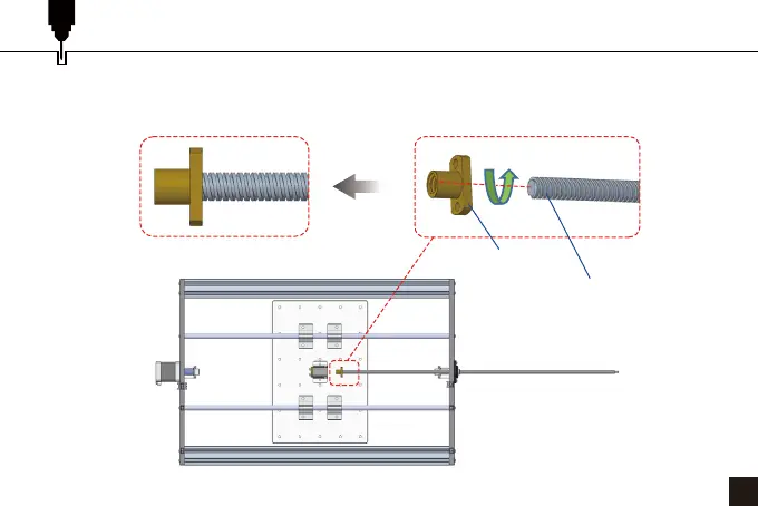 3. Align the new lead screw with the threaded hole of the T-brass nut.