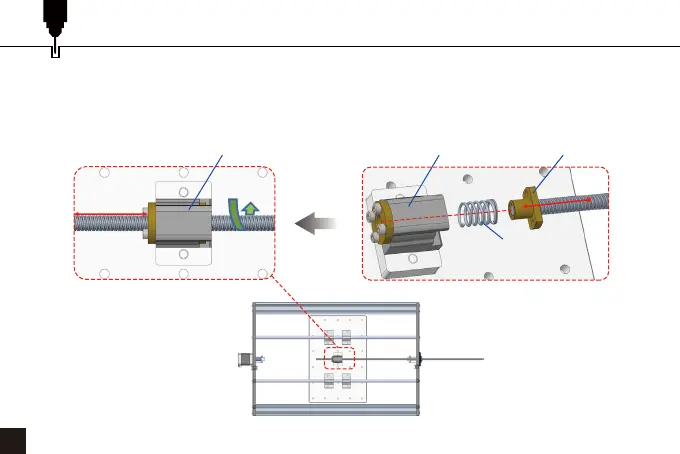 7. Rotate the lead screw clockwise until the screw rod is exposed to the lead screw holder about 40mm.