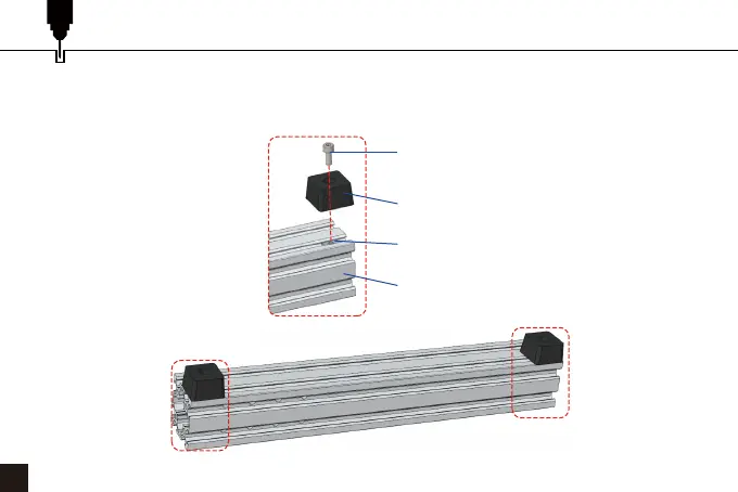 2. Unscrew the rubber foot fixing screws from the original aluminum profile. Then set aside the parts