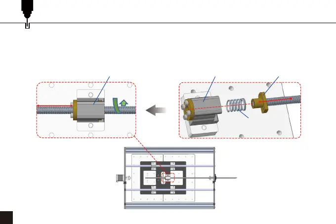 7. Rotate the lead screw clockwise until the lead screw is exposed to the lead screw holder about 40mm.