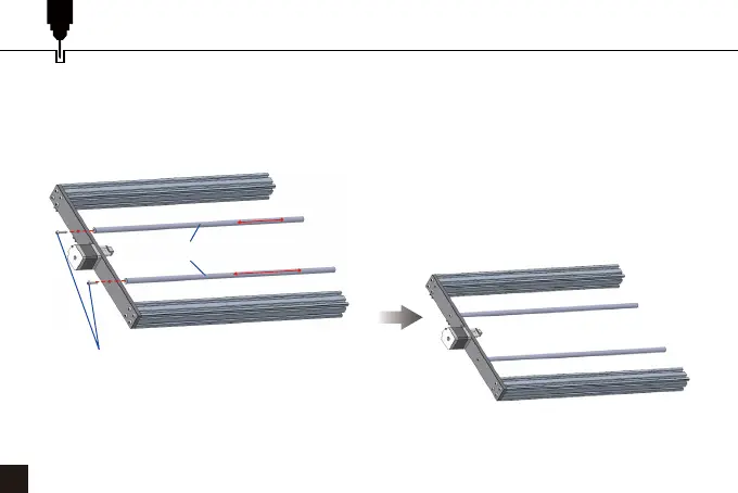 Führen Sie die Schrauben durch die runden Löcher der hinteren Stange und richten Sie sie mit den