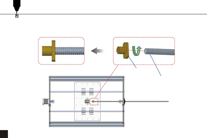 3. Richten Sie die neue Leitspindel auf das Gewindeloch der T-Messing-Mutter aus.