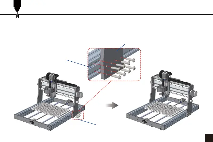 1. Richten Sie die Löcher der rechten Ständerplatte des Portals an den Profil Löchern aus.