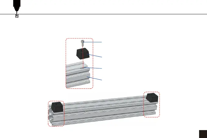 2. Schrauben Sie die Befestigungsschrauben des Gummifußes vom Original-Aluminiumprofil ab. Legen