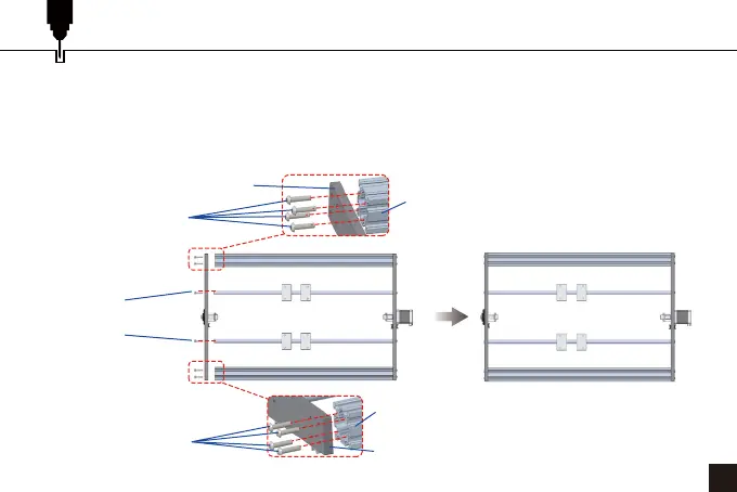 2. Stecken Sie die Schrauben durch die runden Löcher der vorderen Stange, richten Sie sie mit den