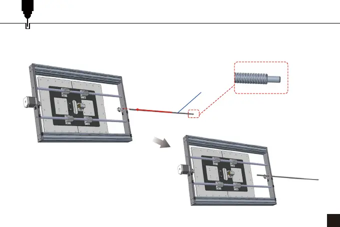 2. Drücken Sie die Leitspindel so, dass sie durch die vordere Stange verläuft.