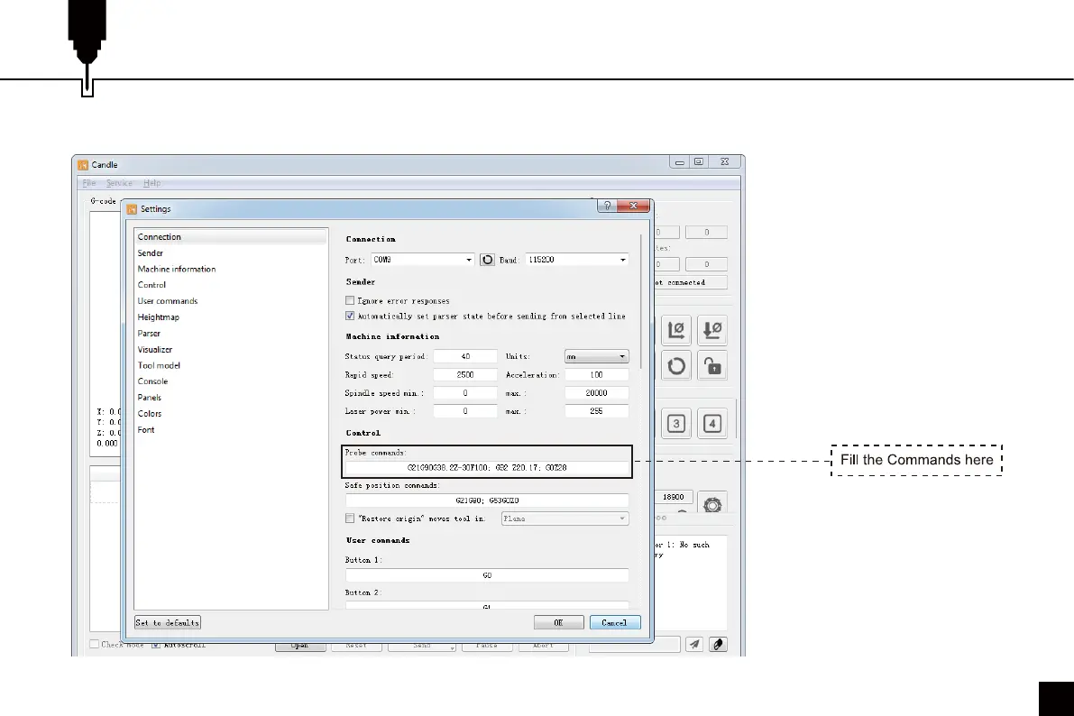 Step 2: Probe commands filled in Grblcontrol (Candle).