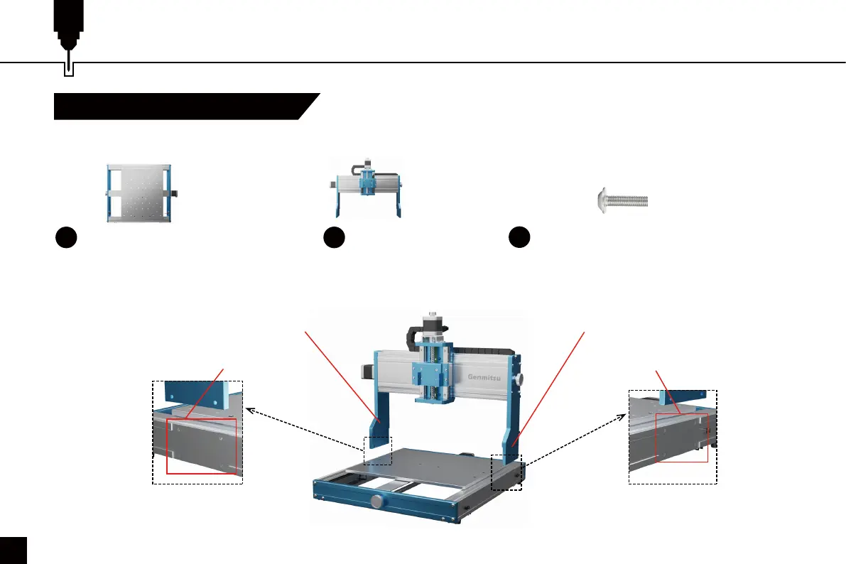 1. Stellen Sie die XZ-Brücke auf und positionieren Sie sie an den dafür vorgesehenen Aussparungen über der XY-Achsen Baugruppe.
