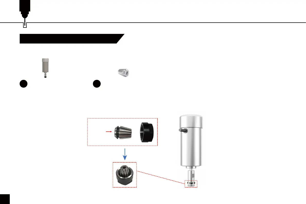 2. Installieren Sie die Spannzange im Überwurf und stellen Sie sicher, dass diese korrekt sitzt. Im Anschluss können Sie den