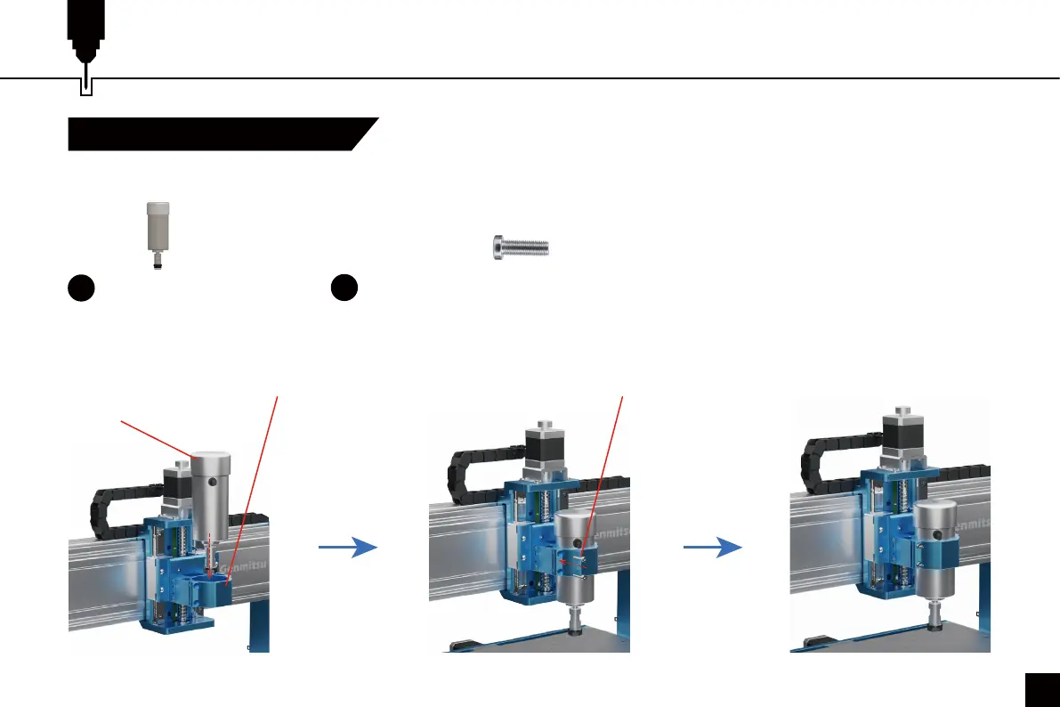2. Klemmen Sie die Spindel mit (2) Schrauben M4×10mm in der Halterung.
