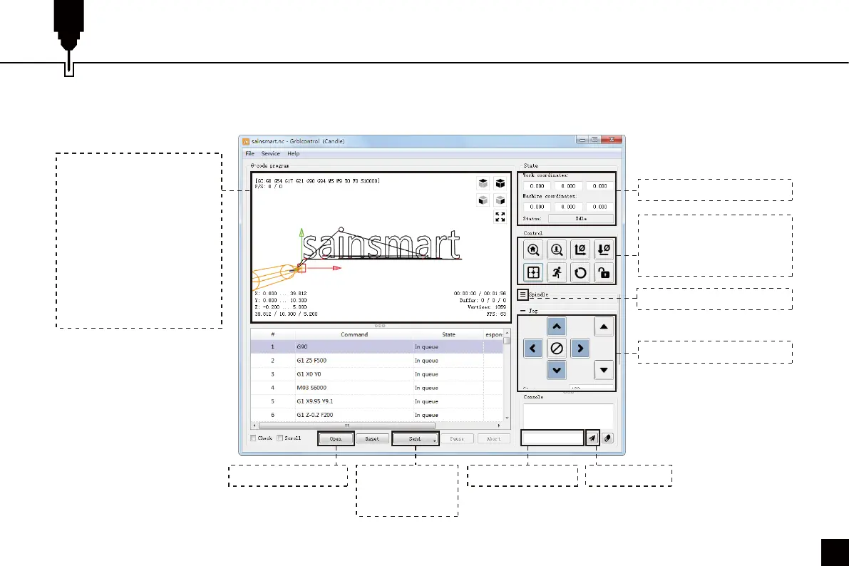 G-Code-Datei öffnen Befehlseingabefeld Befehl senden