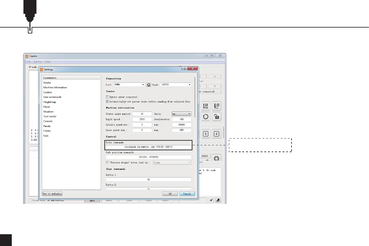 ステップ2:Grblcontrol(キャンドル)に記入されたプローブコマンド。