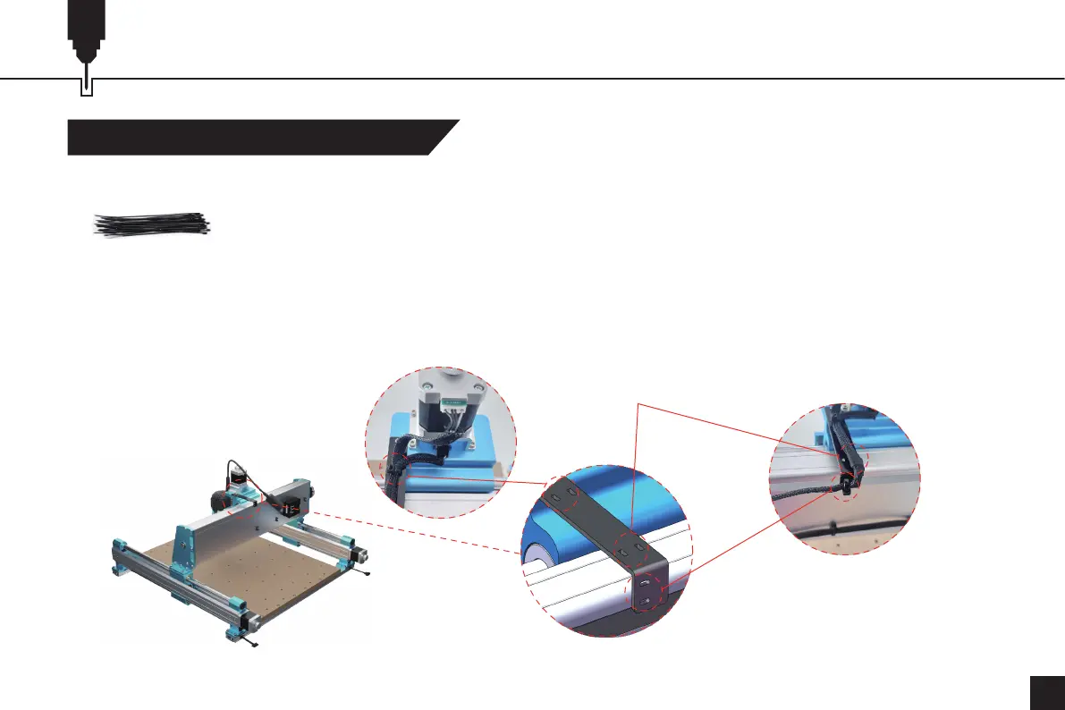 (Note: Skip the middle tie hole of the sheet metal cable holder.)
