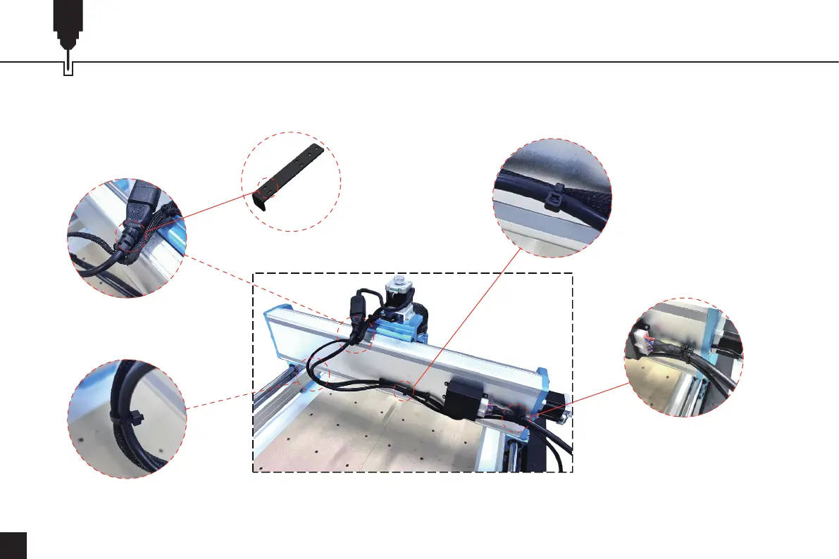 3. Bundle the 710W router power cord cable with ties following the direction of the Z-axis motor & limit cables.