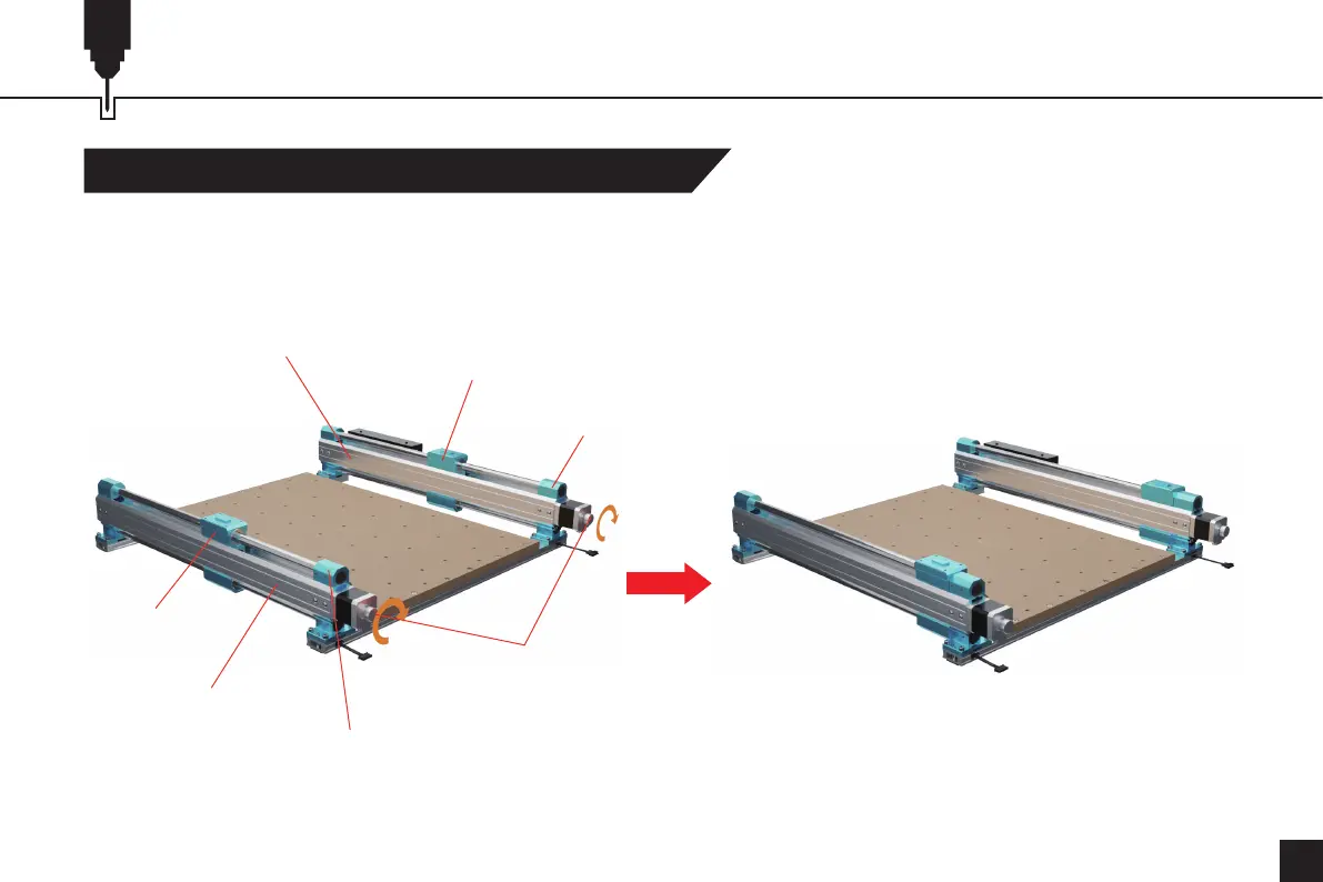 1. Drehen Sie die Handräder an den YL&YR-Modulen im Uhrzeigersinn, so dass die Y-Achsen-Schieber des Moduls genau an den