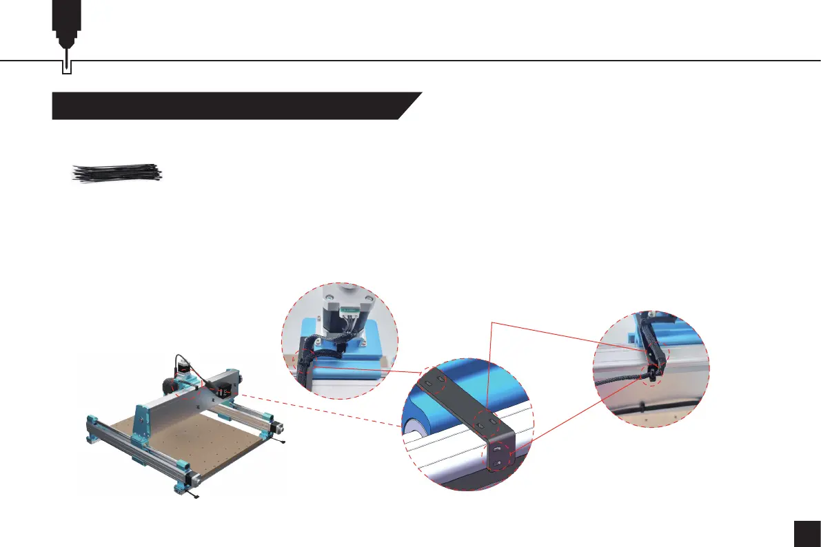 1. Verwenden Sie 2 Kabelbinder, die Sie durch die 2 Kabelbinderlöcher des Kabelhalters aus Blech führen.