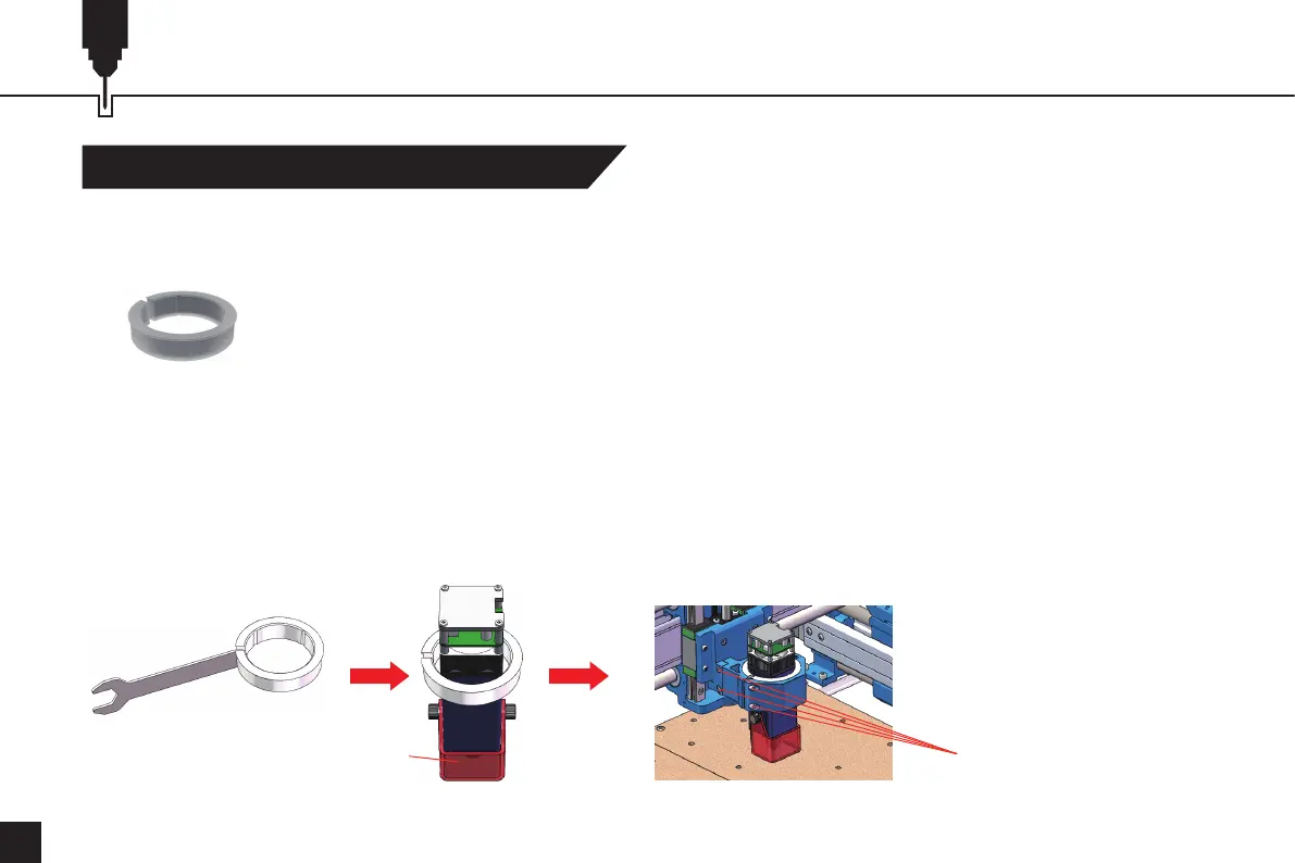 2. Wenn der Haltering leicht angezogen ist, dehnen Sie ihn mit Hilfe eines Werkzeugs leicht auf und setzen Sie das Lasermodul ein.