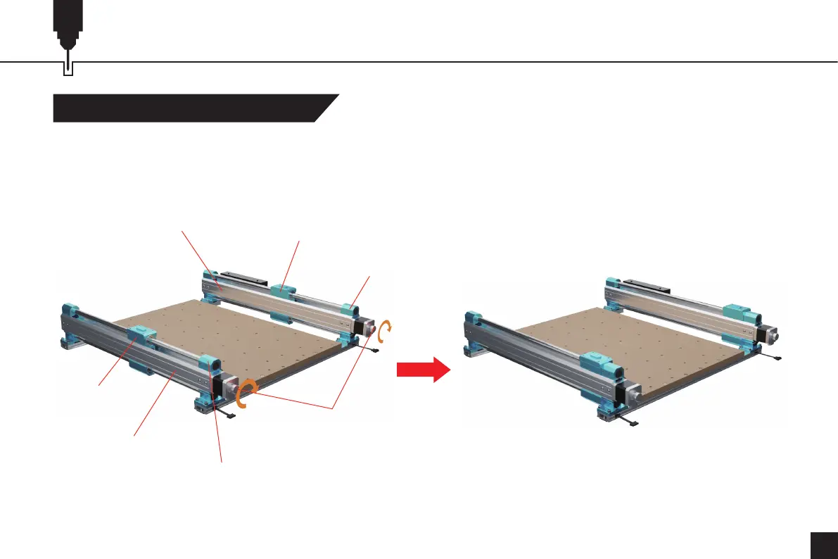 1.YL&YRモジュールのハンドルを時計回りに回し、モジュールのY軸スライダーがリアマウントにぴったり合うようにします。