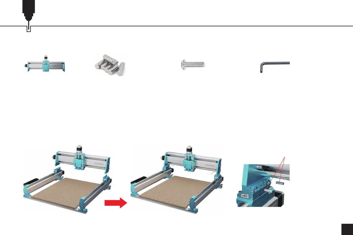 X軸モジュールv (4)D6-L20ダボピン (6)M5×20六角丸ネジ