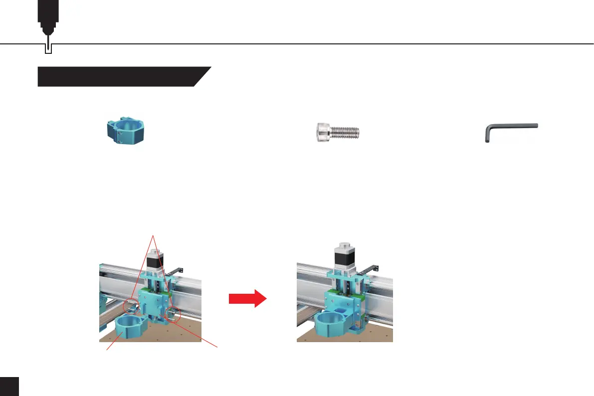 2.(4)M4x18mmをZ軸クランプ取り付けプレートに通して、スピンドルモーターマウントを取り付けます。
