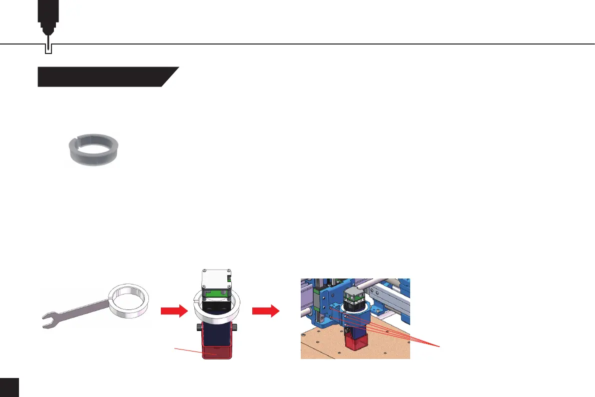 保持リングが少し固い場合は、スピンドルモーターマウントのネジ2本と側面のネジ4本を外し、レーザーモジュールを取り付けます。