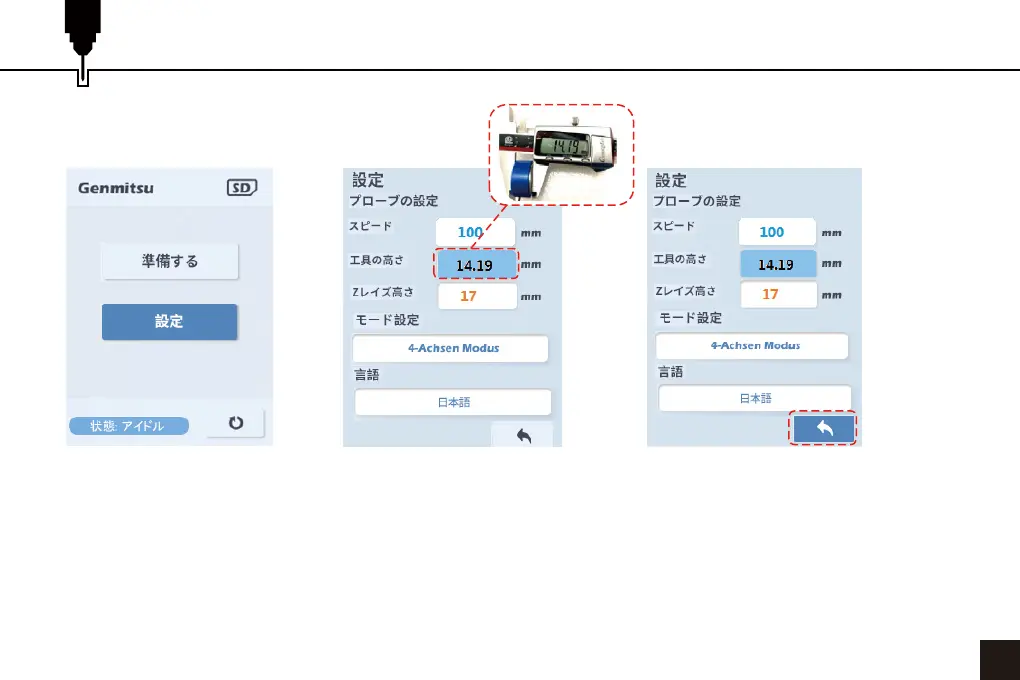 3.ToolHeightを選択し、ダイヤルを押して選択し、ダイヤルを回して記録された高さに値を変更します。