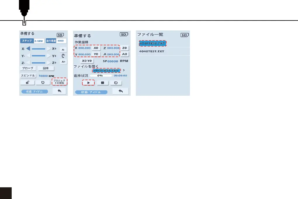 5. スタートポジションを設定し、Gコードファイルを開いたら、スタートボタンを選択し、ダイヤルを押して