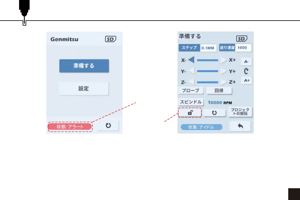 ローラはパワーオンインターフェースに戻り、左下のステータスバーがALARMを表示します。
