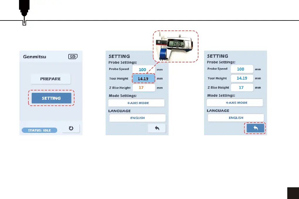 3. Select Tool Height, press the dial to select and turn the dial to change the value to the recorded height.