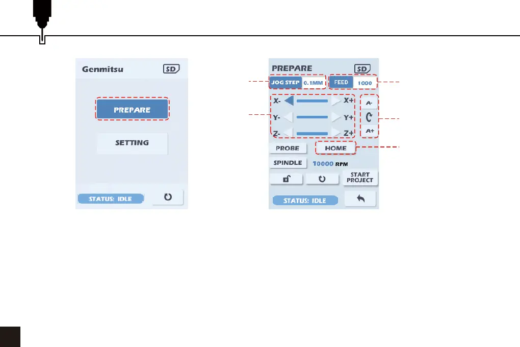 4. Move the cursor to the direction arrows of X, Y and Z. Press the dial to move the corresponding axis by the