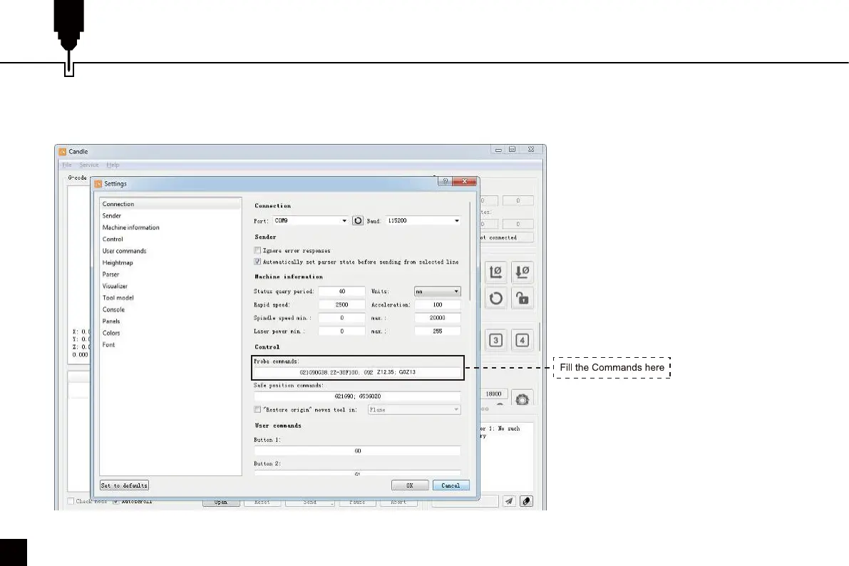 Step 2: Probe commands filled in Grblcontrol (Candle).
