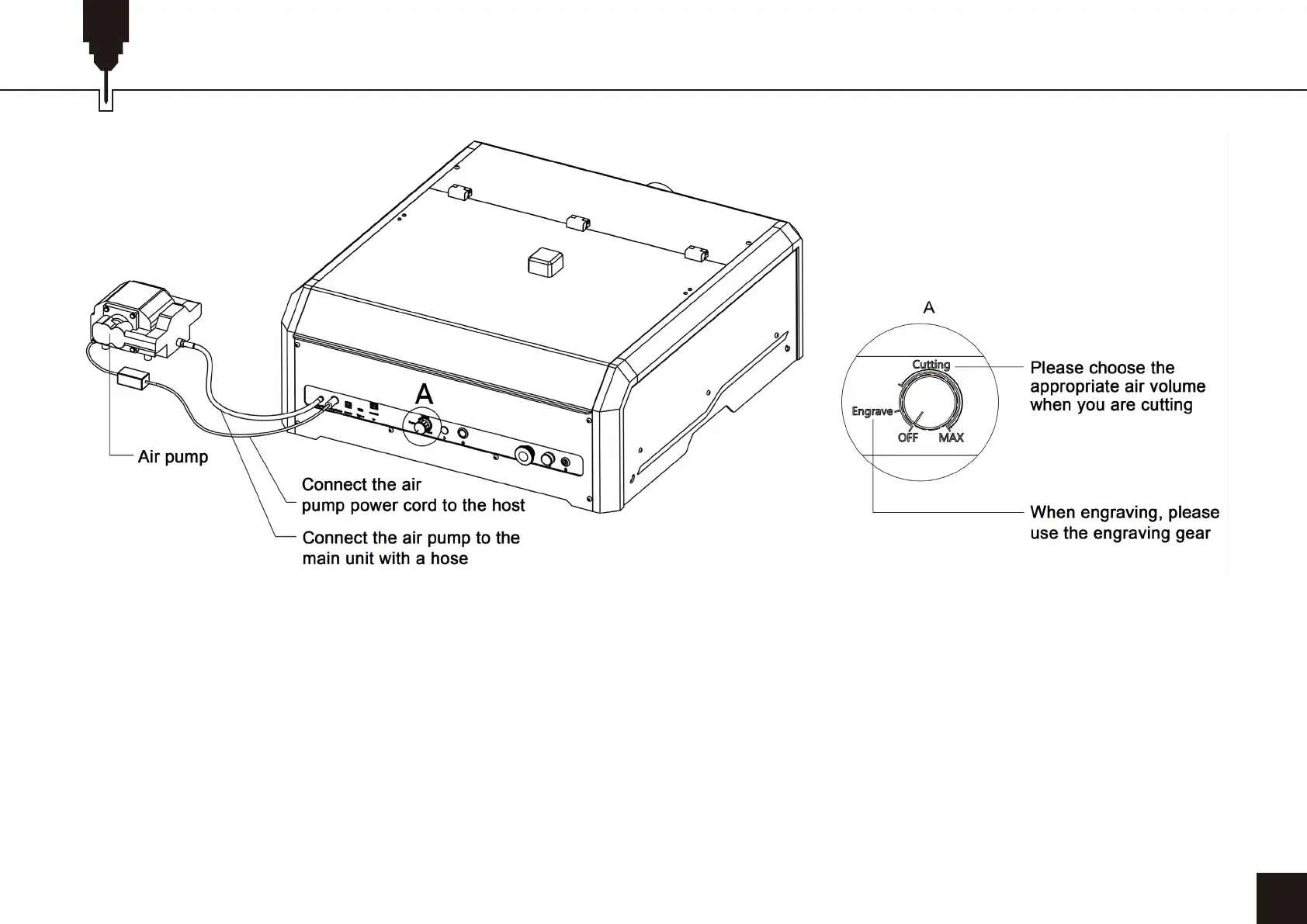 Connect the air assist pump to the engraving machine.