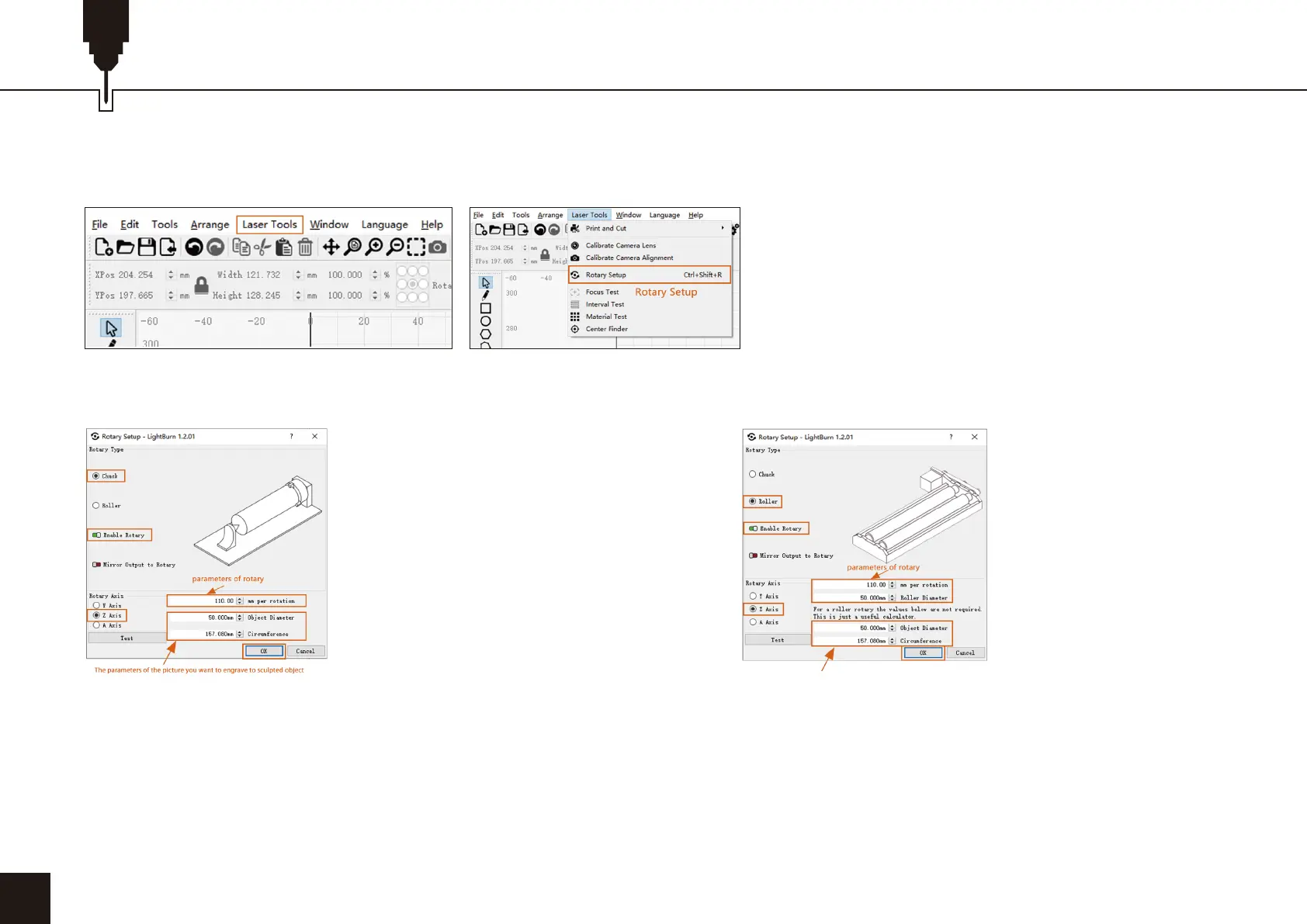 2.1 Open the rotation settings window, click "Laser Tools" on the toolbar, then click "Rotary Setup”.