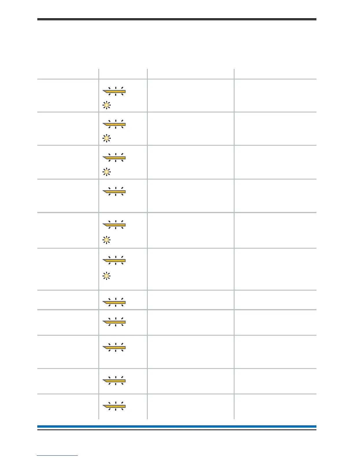 The table below is for guidance only and shows some of the more typical fault messages and indications that