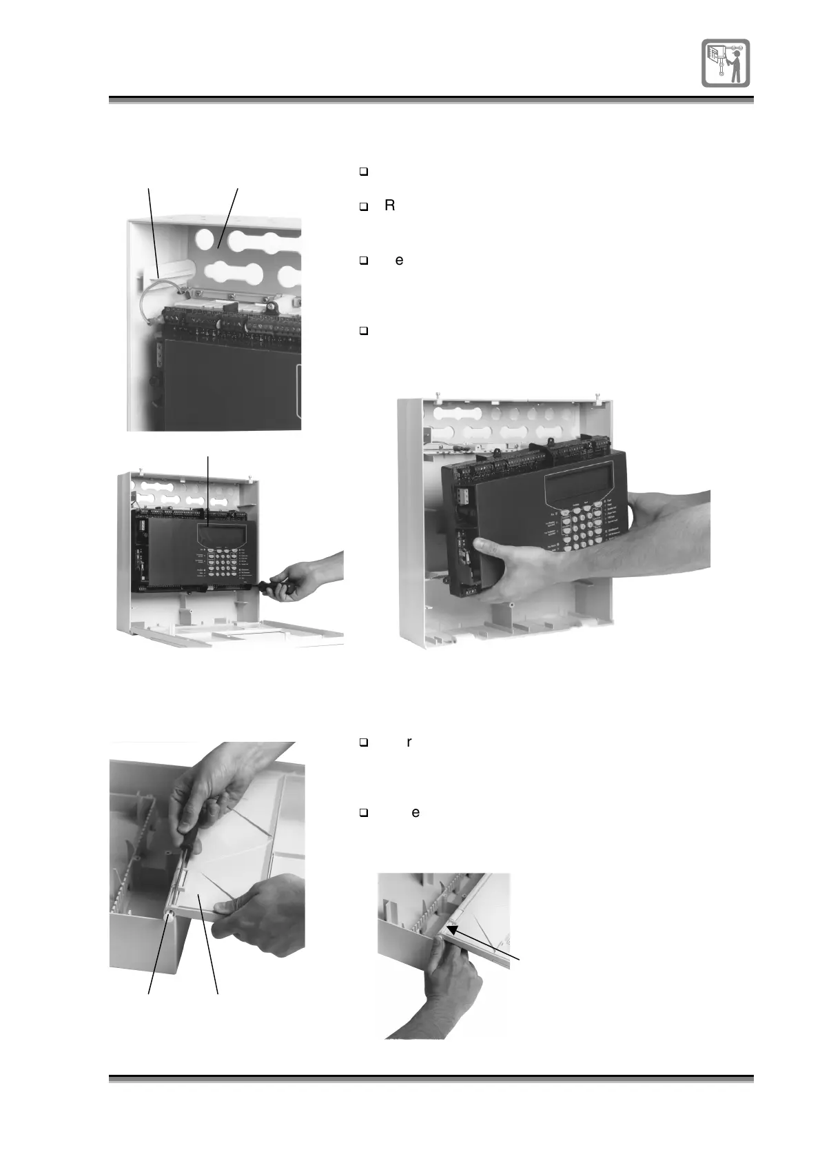 To remove the door: Hold the door and use a terminal