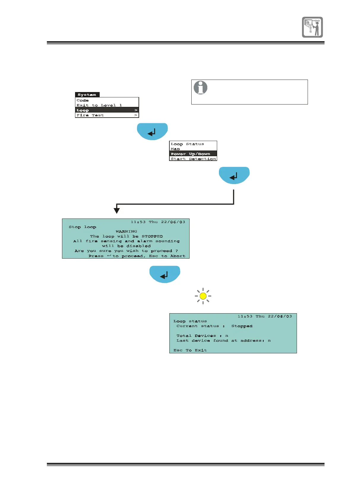 Gent System 800 - To Power down the Loop Circuit; (Assuming the Loop Is Powered Up)