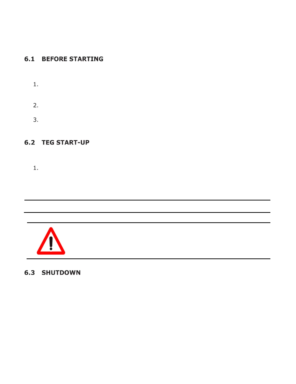 Once the TEG is started, closing the manual shut-off valve will shut it off.