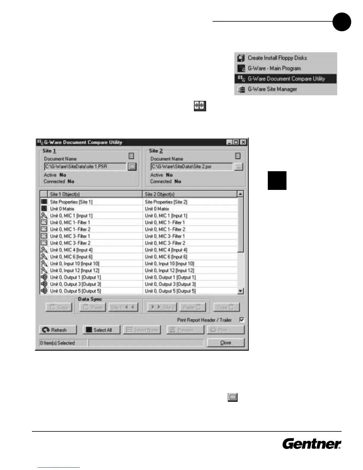 Gentner G-Ware Menu (Windows
